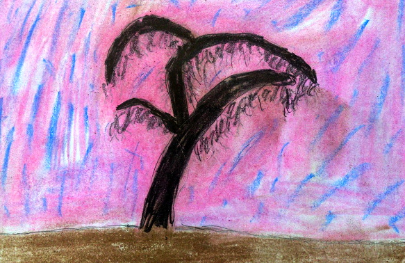También dibujamos árboles con carboncillo y pinturas pastel.